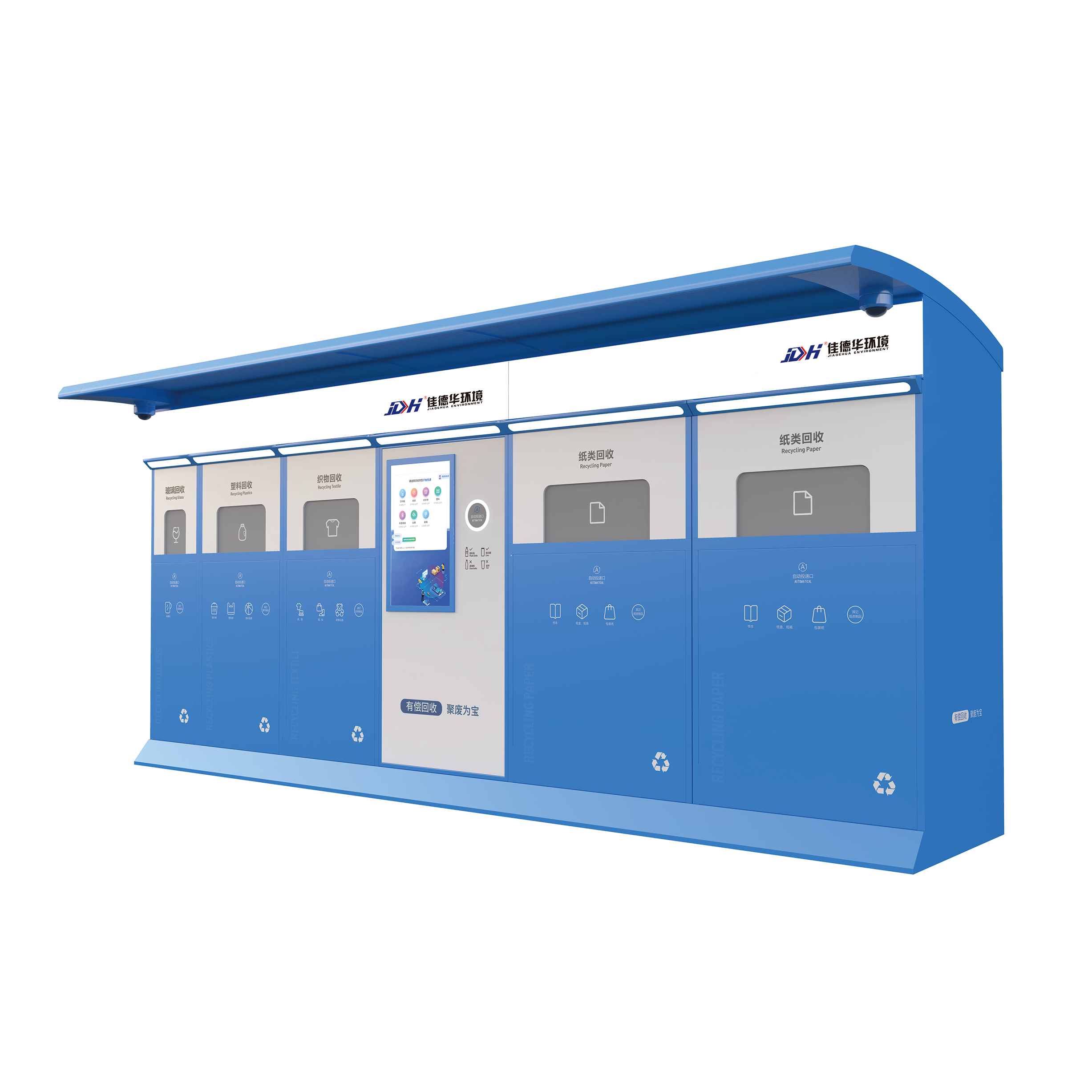 本智能回收箱是集成了工业控制技术,智能检测及称重技术,物联网及云技术的新一代高科技产品。本回收箱体系采用模块化结构,可以根据客户要求快速制定出各种组合的型号。